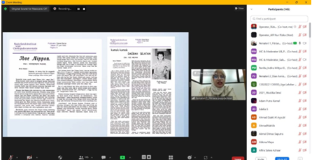 The first topic for the webinar was Post-War Japanese Literature, explained by Fitriana Puspita Dewi, S.S., M.Si., Ph.D. Her research focuses on post-war Japanese literature and gender. In this session, Fitri Sensei explained characteristics and gave some examples of post-war Japanese literature.